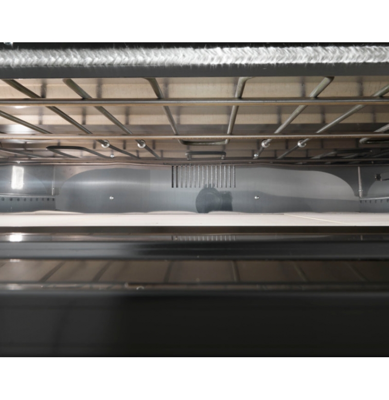 Tato trouba je vybavena revolučním systémem rekuperace tepla, která po otevření dvířek okamžitě cirkuluje teplo zpět dovnitř, aby se minimalizovaly tepelné ztráty. Tyto trouby lze dodat s podstavcem a plně funkčním odsavačem par, který by měl být vyveden ven mimo budovu.