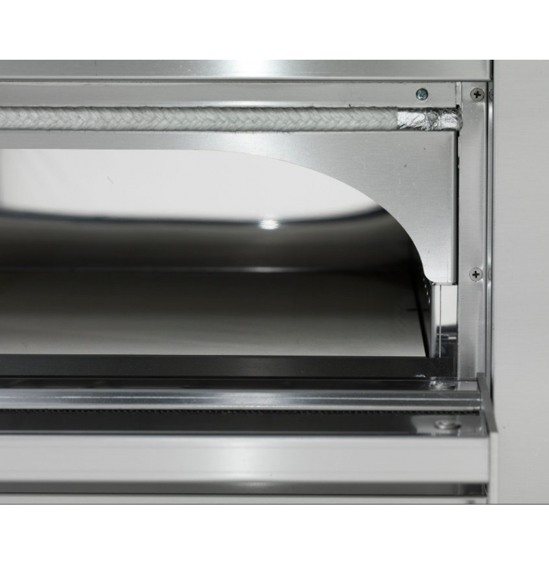 K dalším přednostem patří prosklená dvířka a vnitřní osvětlení pro kontrolu průběhu přípravy pizzy a dno z cordieritových kamenů, které zaručuje autentickou přípravu italské pizzy.