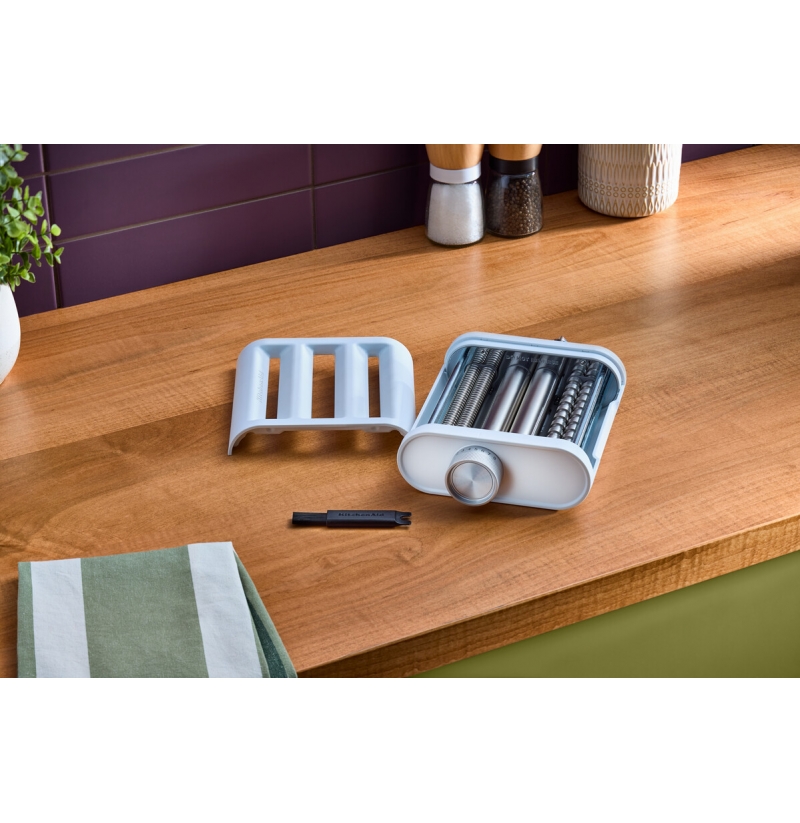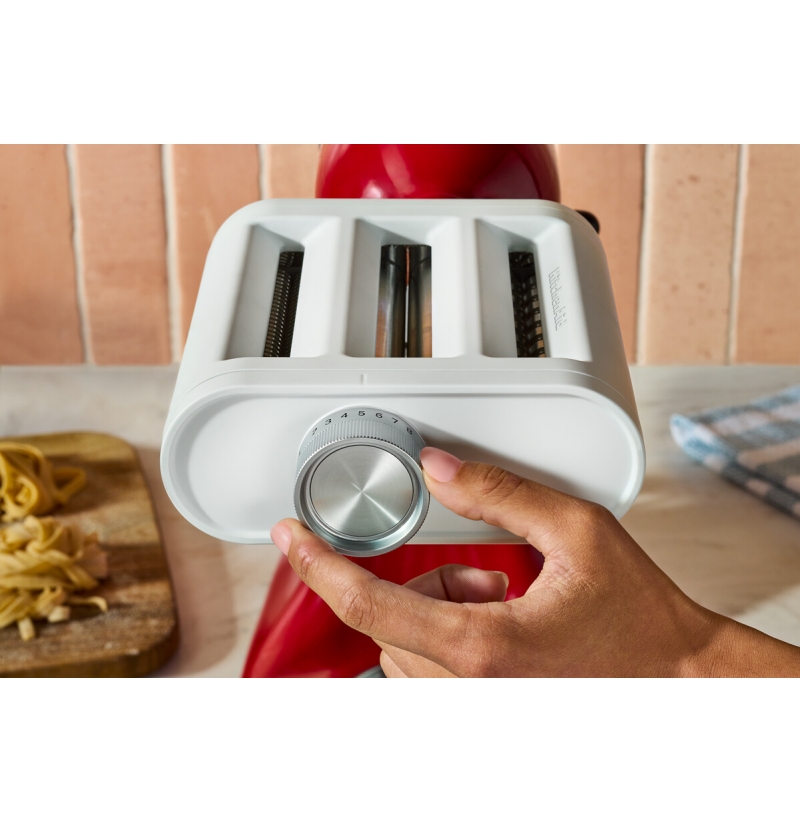 - Nástavec typu 3 v 1 je poháněný kuchyňským robotem KitchenAid a pomáhá snadno vyválet a nakrájet čerstvé těstoviny pomocí jediného nástavce.