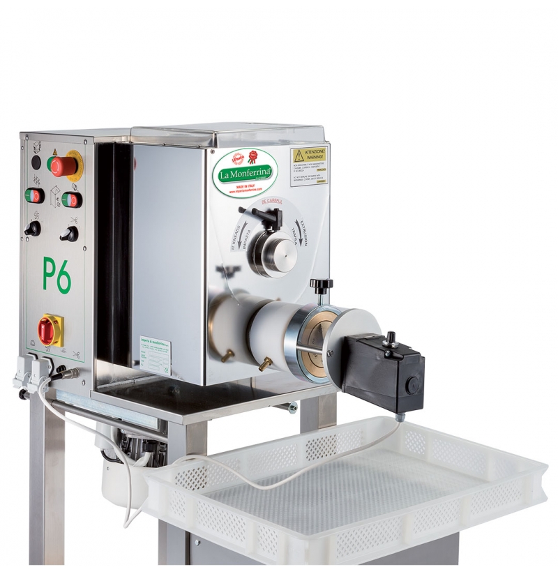 Výrobník těstovin P6 od italského výrobce La Monferrina je profesionální stroj určený pro výrobu čerstvých tlačených těstovin v restauracích, bistrech, hotelech i menších výrobních provozech. Díky integrovanému hnětači a robustní extruzní jednotce umožňuje rychlou a efektivní výrobu široké škály druhů čerstvé pasty přímo v gastronomickém provozu.