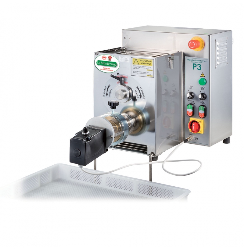 Dostupnost 4 - 6 týdnů Není sklademMultifunkční automatický výrobník tlačených těstovin střední kapacity model P3 s jednofázovým motorem na 230 V. Kapacita hnětače 3 kg.